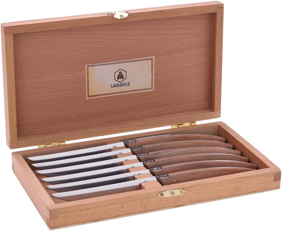 LAGUIOLE - Set mit 6 Steakmessern auf Holzklotz