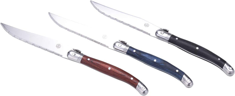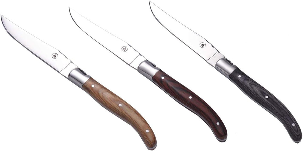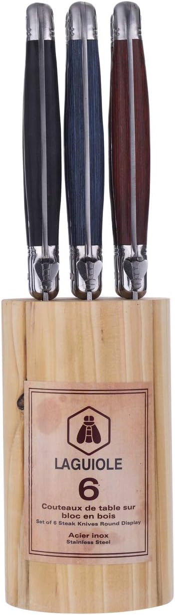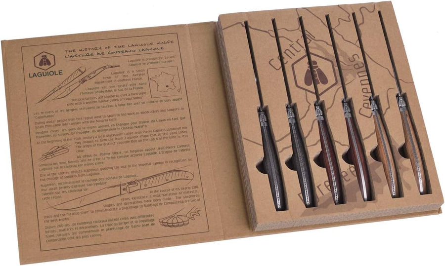 LAGUIOLE - Box 6 Steakmesser - Pakka Holzgriff 3 Farben sortiert - Edelstahl - Karton-Geschenkbox mi