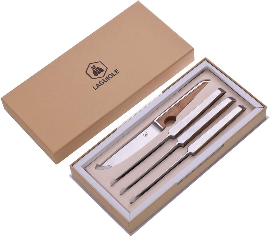 LAGUIOLE - Grillset 3 praktische Utensilien - Spatel - Gabel - Klemme - Edelstahl, Holz - Geschenkbo
