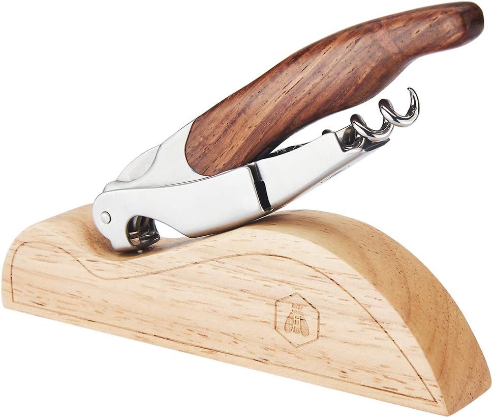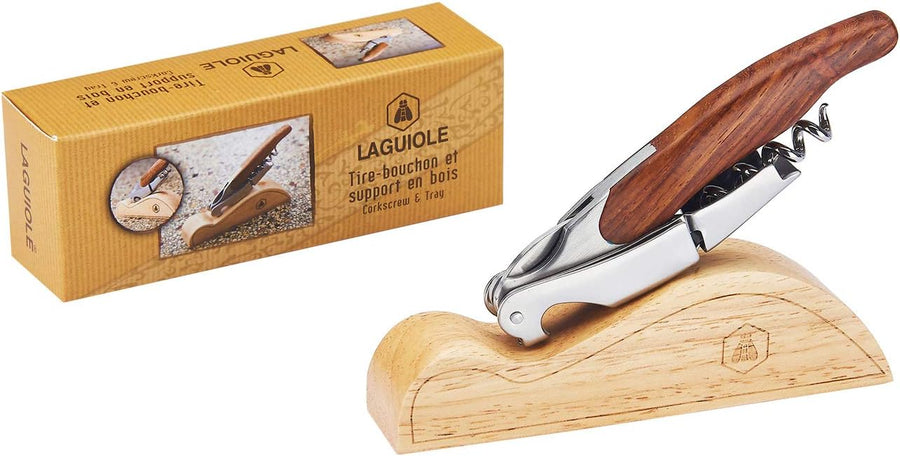 LAGUIOLE - Sommelier Doppelhebel - Edelstahl - Holzgriff - Holzpräsentationshalter - Messer mit Kork