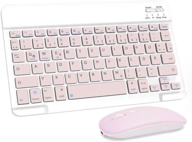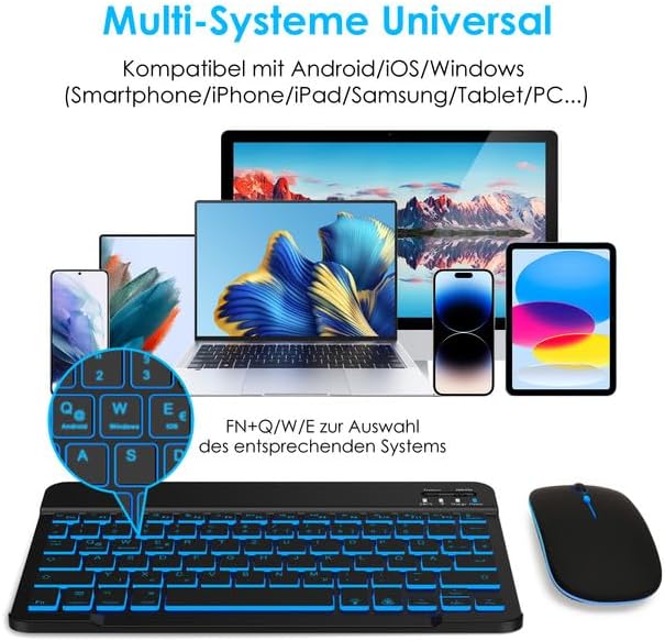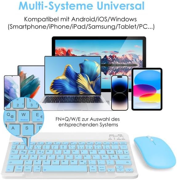 LAMA Kabellose Bluetooth Tastatur & Maus, wiederaufladbare Ultra-dünn Universal Tablet Tastatur, kom