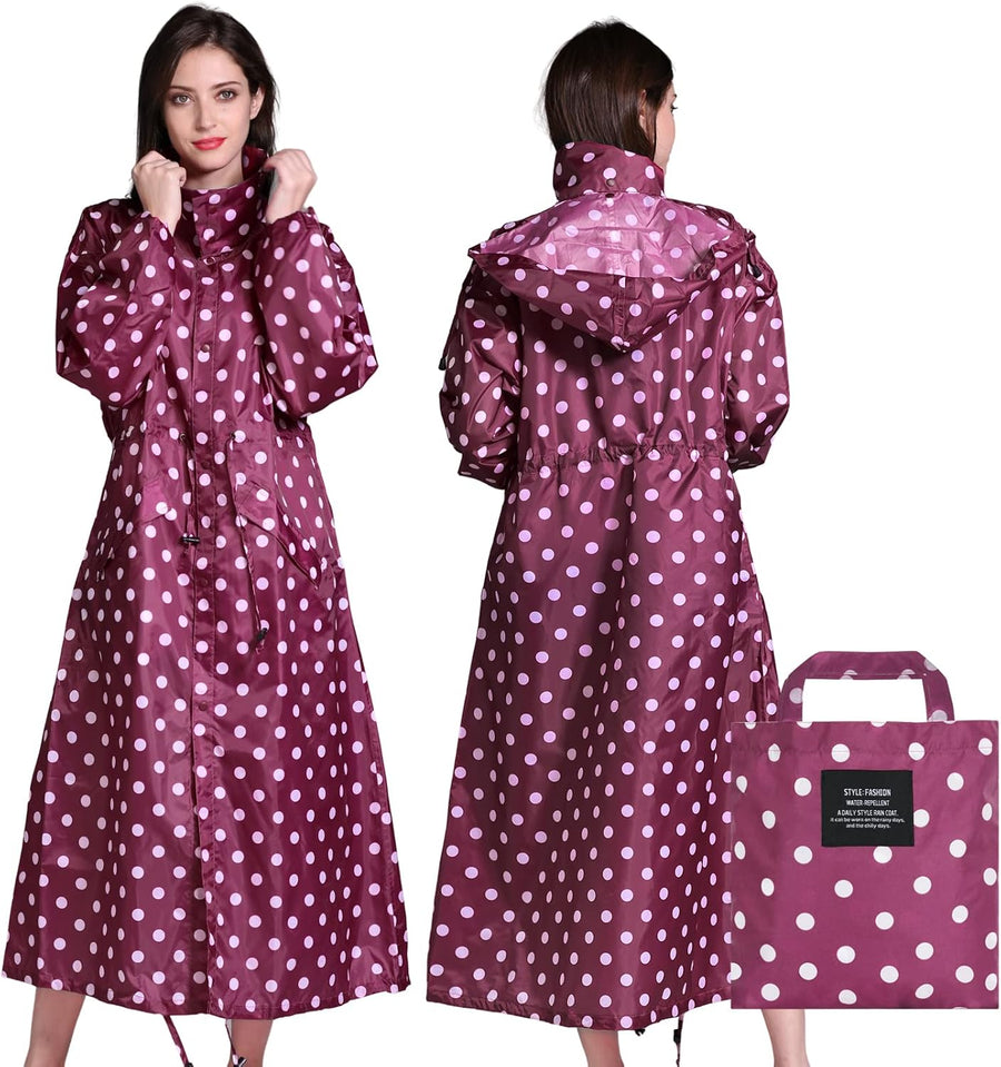 LAMA Stilvoller langer Regenmantel Unisex Regenponcho mit Wasserdichte Pattentasche Kapuze Tunnelzug