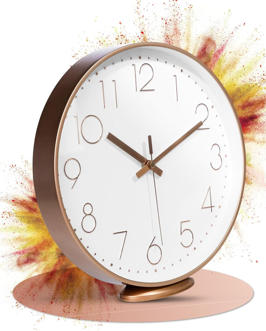 LATENO - Wanduhr zum aufstellen oder aufhängen - Rosegold weiss 30 cm - lautlos - klassisch und mode