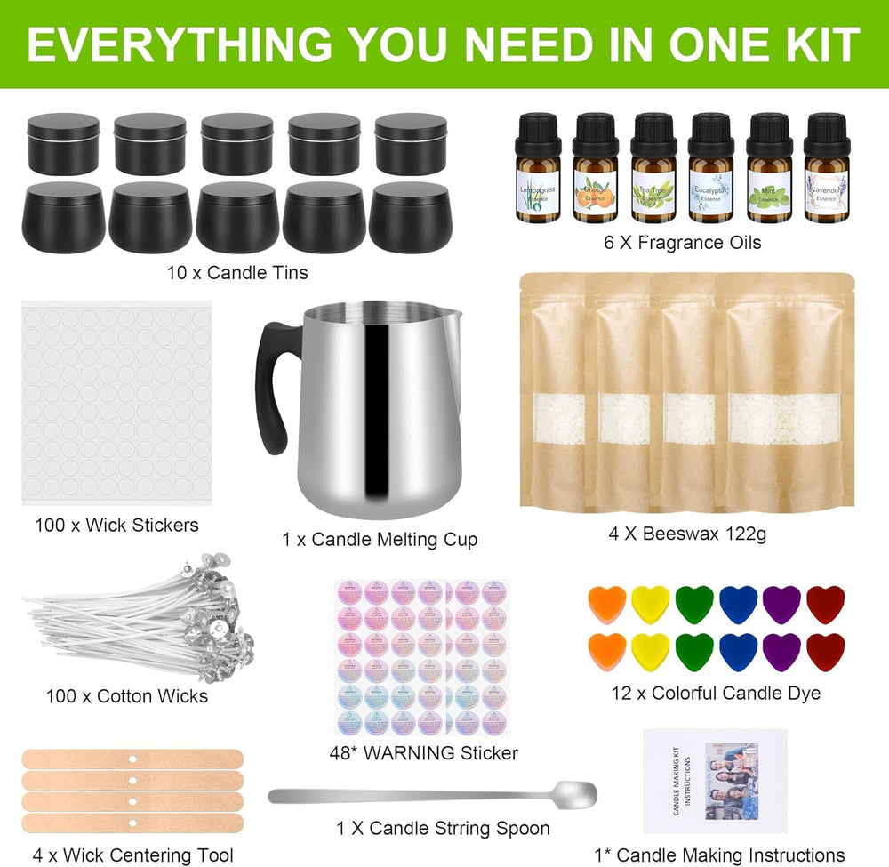 Kerzen Selber Machen Set, DIY Kerzenherstellung Kit 480G Bienenwachs für Kerzen, 9 Dosen 6 ätherisch