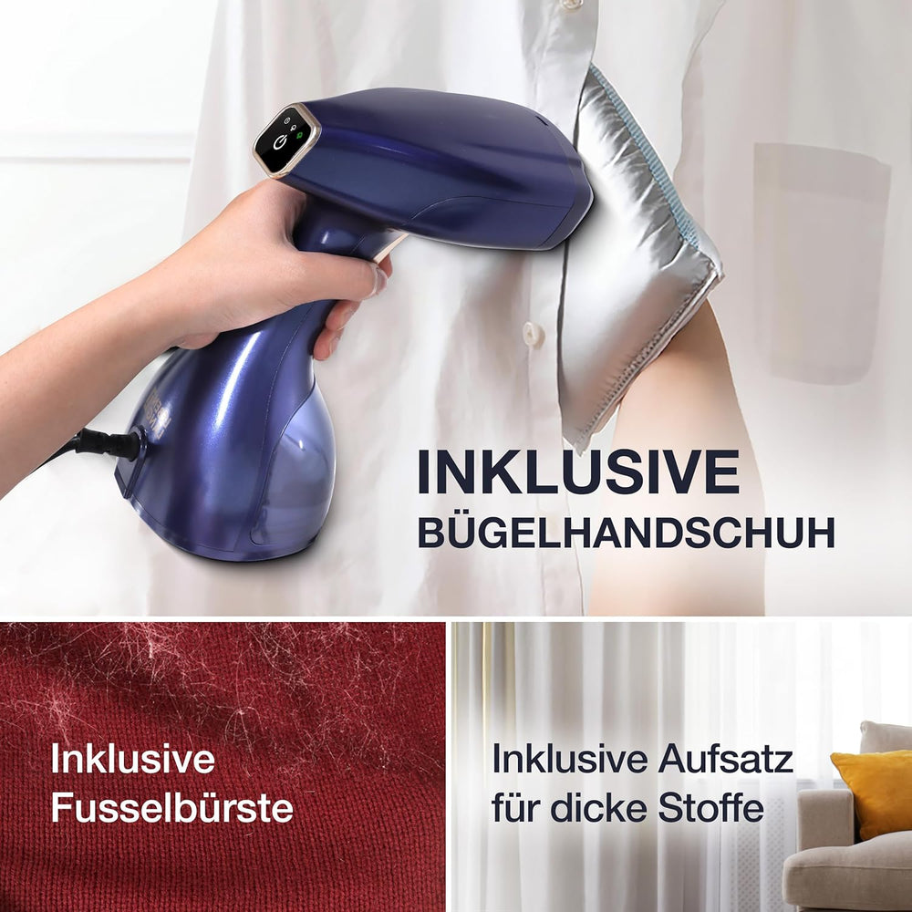LEBENLANG Steamer Dampfglätter 1500W & 25g/min LCD - 300ml Dampfbürste mit Bügelhandschuh - Dampf Gl