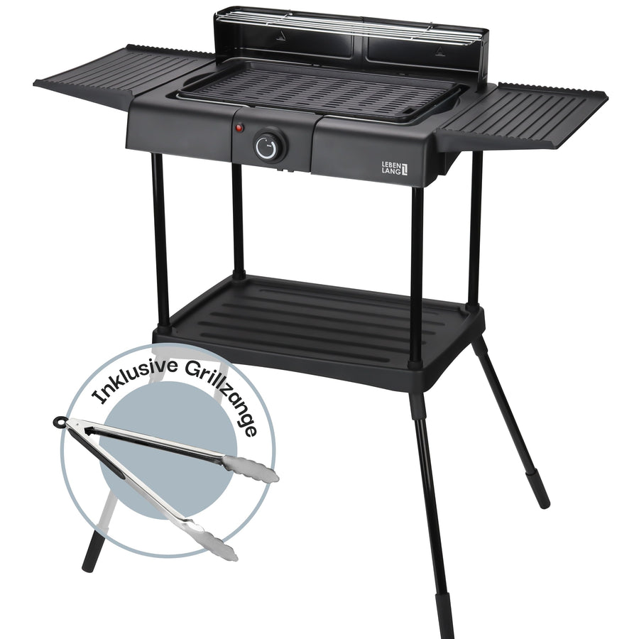 LEBENLANG 2in1 Elektrogrill Tischgrill elektrisch - Inkl. Standfuss & Grillzange I Elektro Grill für