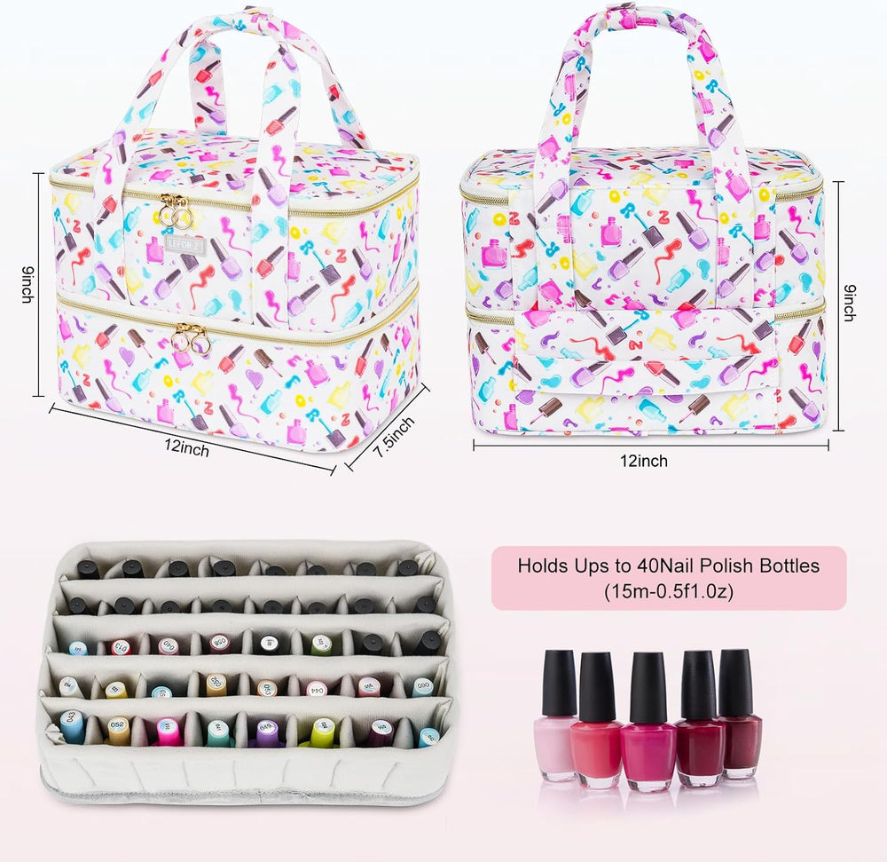 Nagellack Aufbewahrung Tasche,Doppelschichtige Nagellack Organizer für 40 Flaschen(15 ml-0.5 FL.oz)