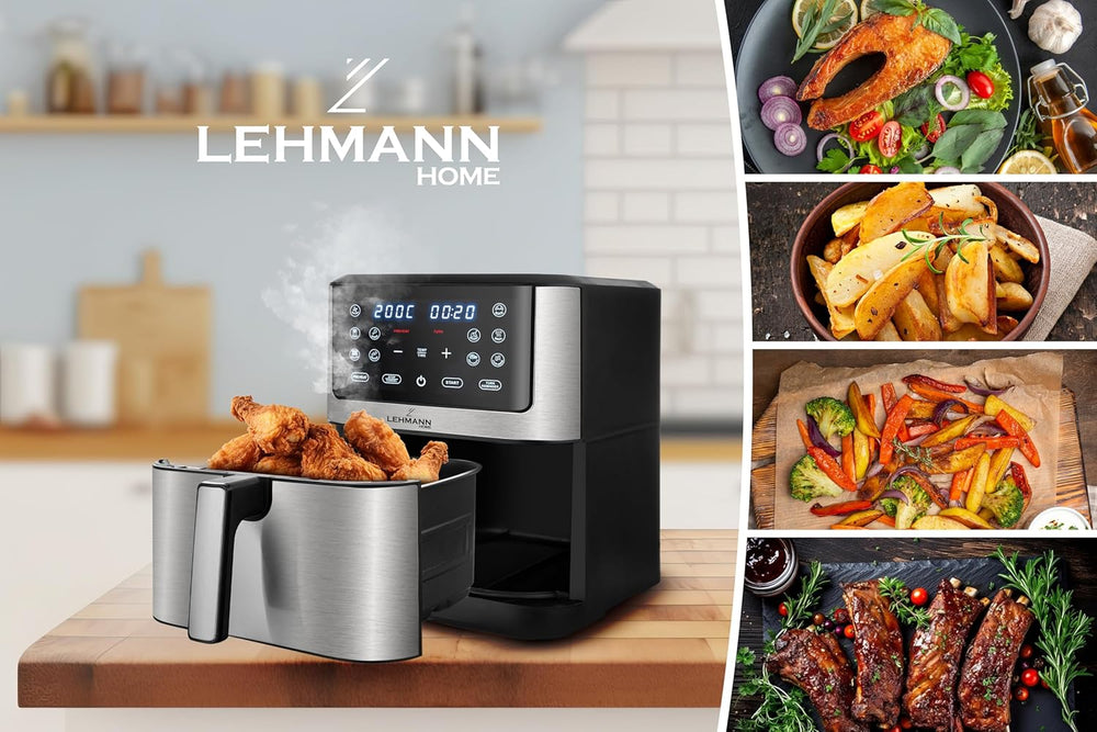 Lehmann Friteuse Heissluft XXL 1800 W, Heissluftfritteuse 8L mit bis zu 10 Programmen, Air Fryer mit