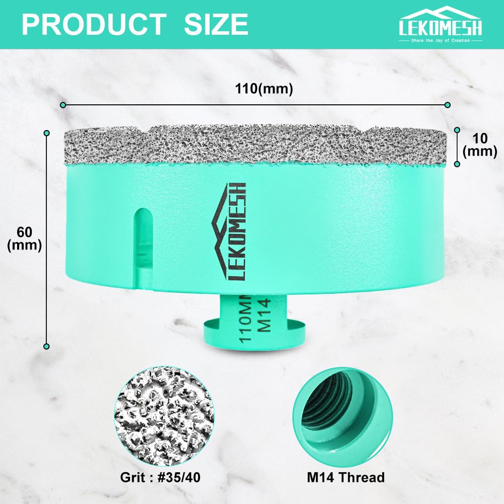 Diamantbohrkrone Fliesenbohrer 110MM Lochsäge - LEKOMESH Für Porzellan Keramik Fliesen Marmor Granit