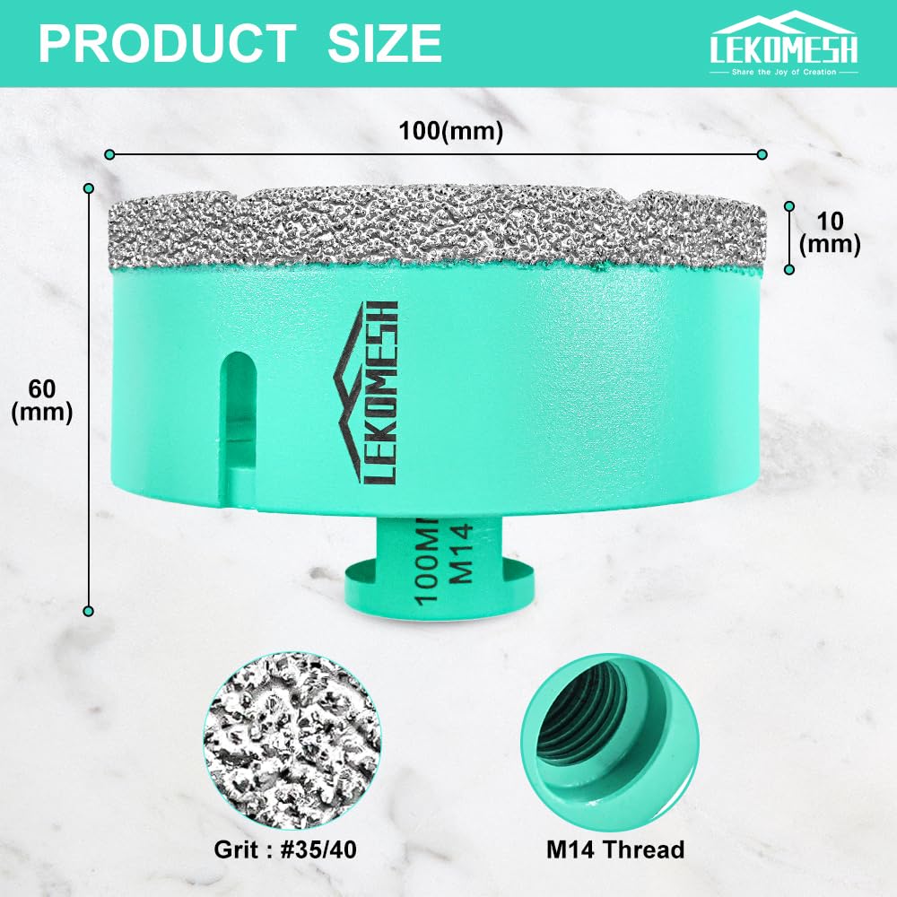 Diamantbohrkrone Fliesenbohrer 100MM Lochsäge - LEKOMESH Für Porzellan Keramik Fliesen Marmor Granit