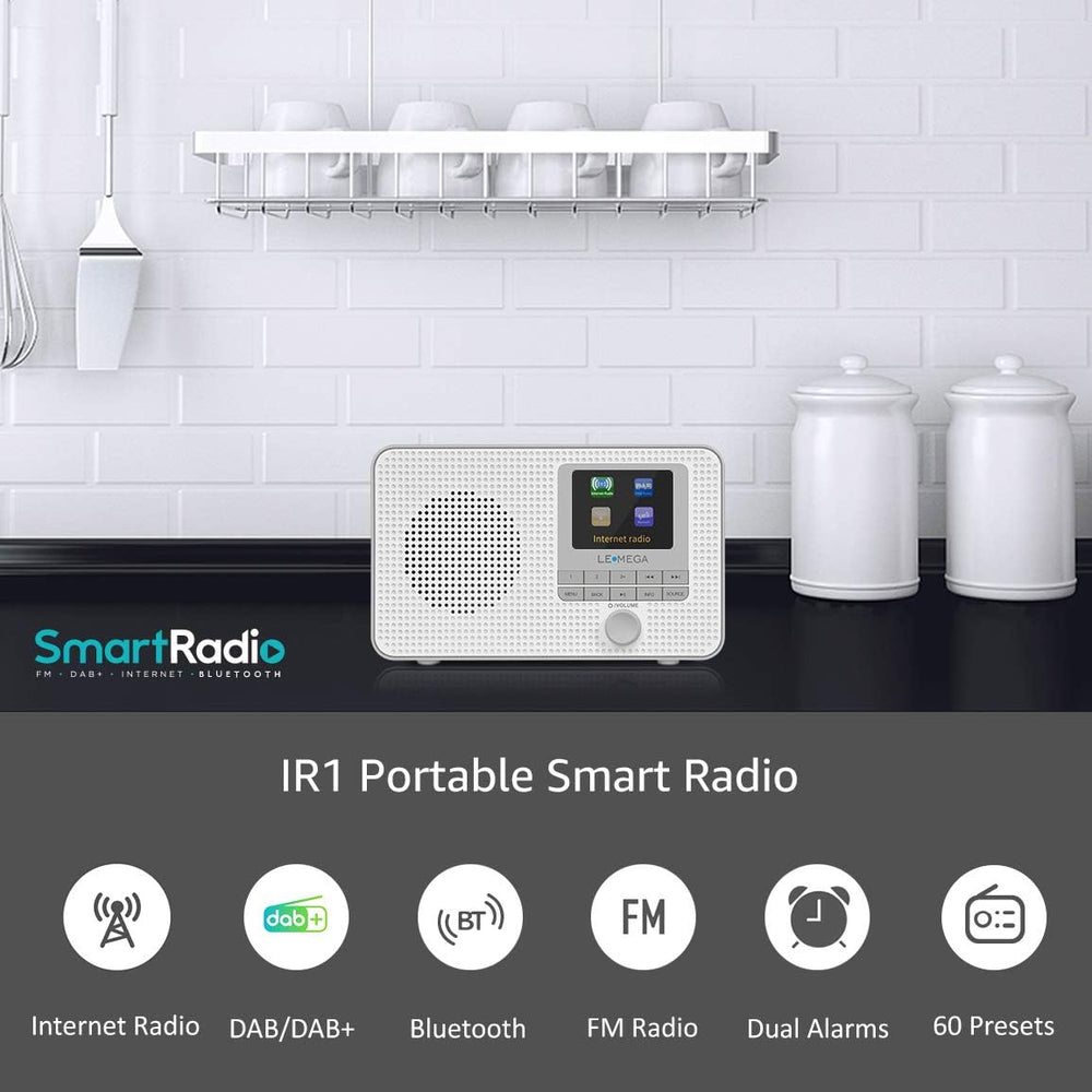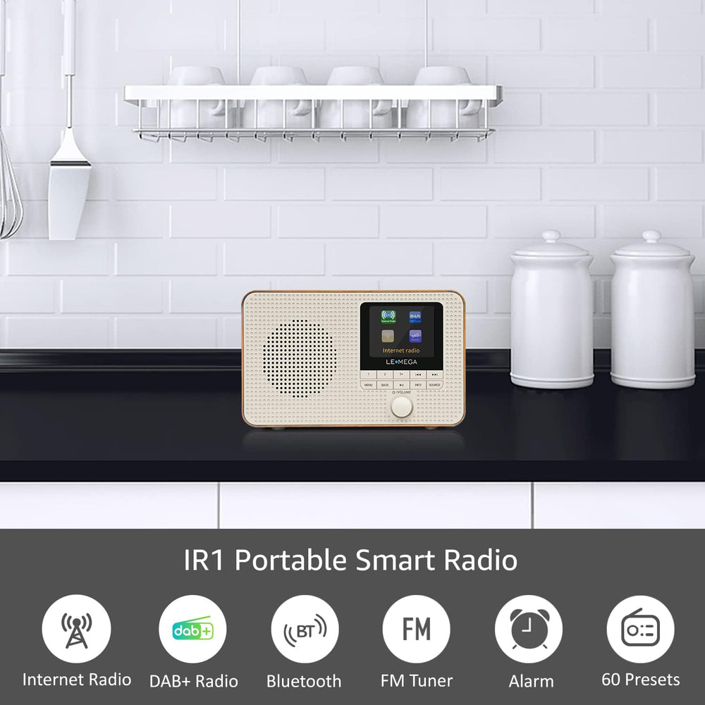 LEMEGA IR1 Tragbares WiFi Internetradio,DAB/DAB+/FM Digitalradio,Bluetooth,Doppelwecker,Schlaf-Snooz