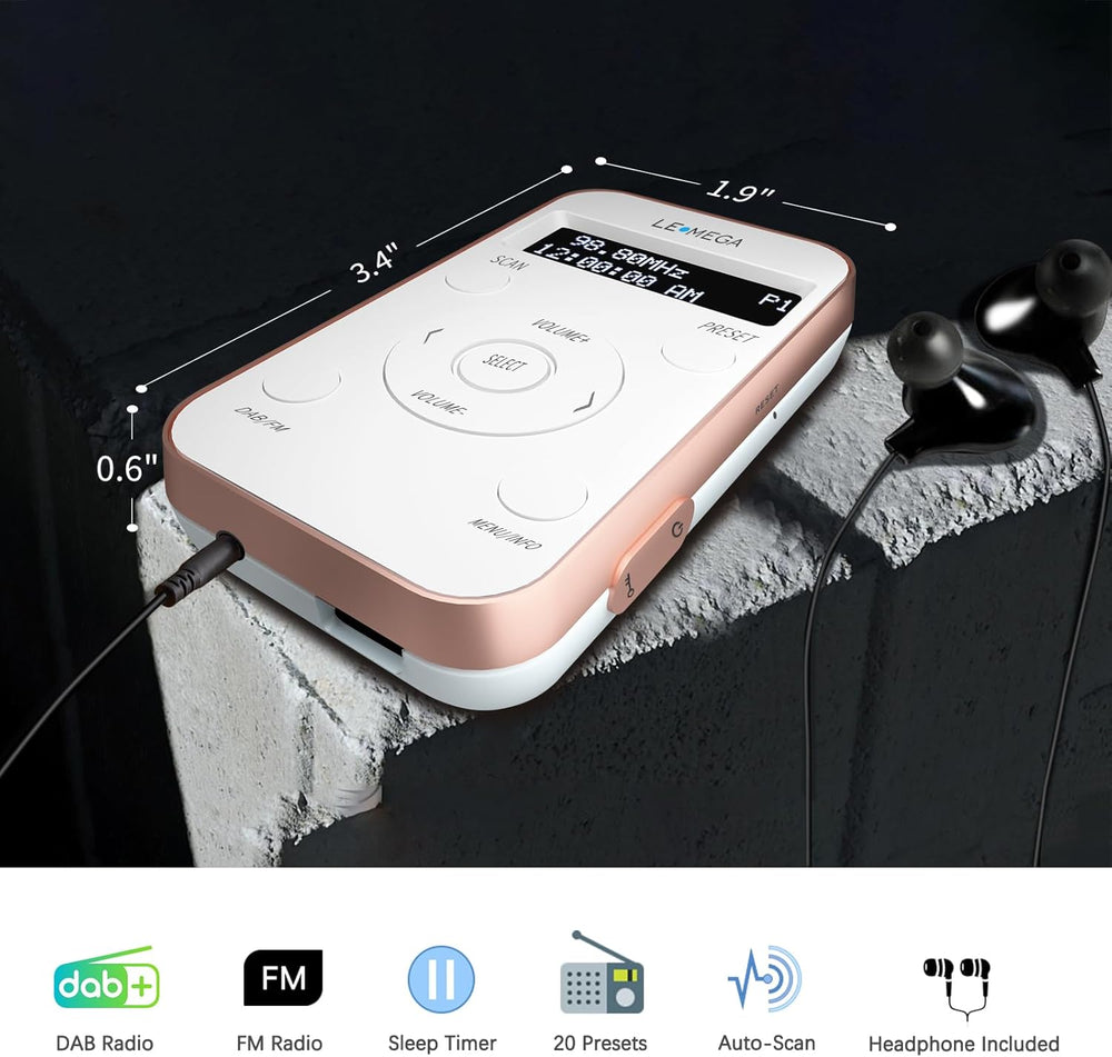 LEMEGA PR1L Taschen-DAB-Radio, FM-Radio, tragbares DAB+-Radio, inkl. Kopfhörer, wiederaufladbare Bat