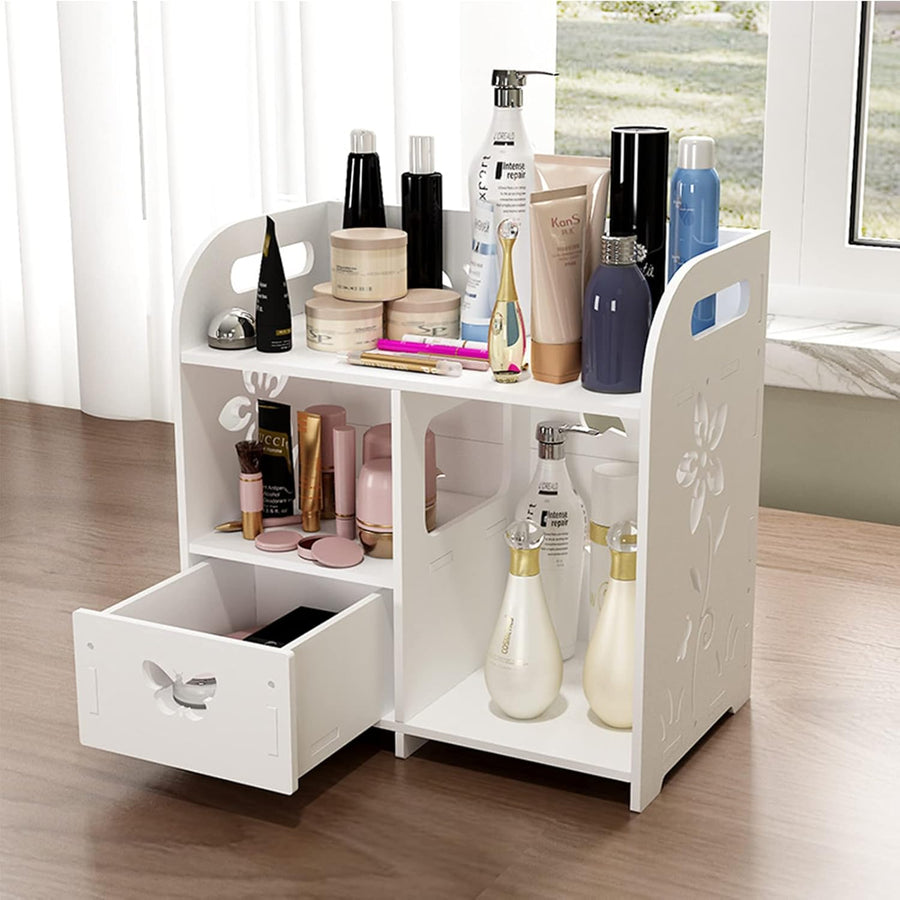 Make up Organizer mit Schublade, Schminktisch Organizer mit Spiegel, Weiss Cosmetic Organizer, Deskt