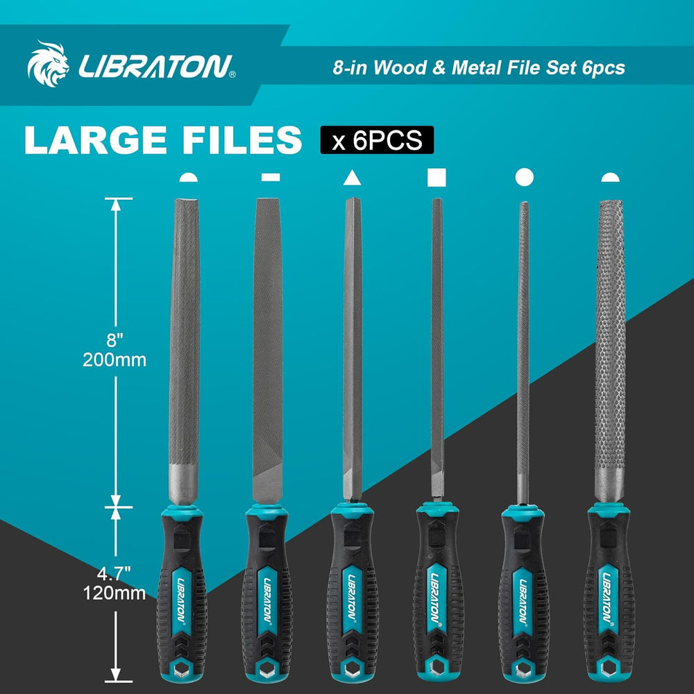 Libraton Feilensatz Metall und Holz 6tlg, Kohlenstoffstahl Feilen Satz, Profi Feilenset, 200mm Metal