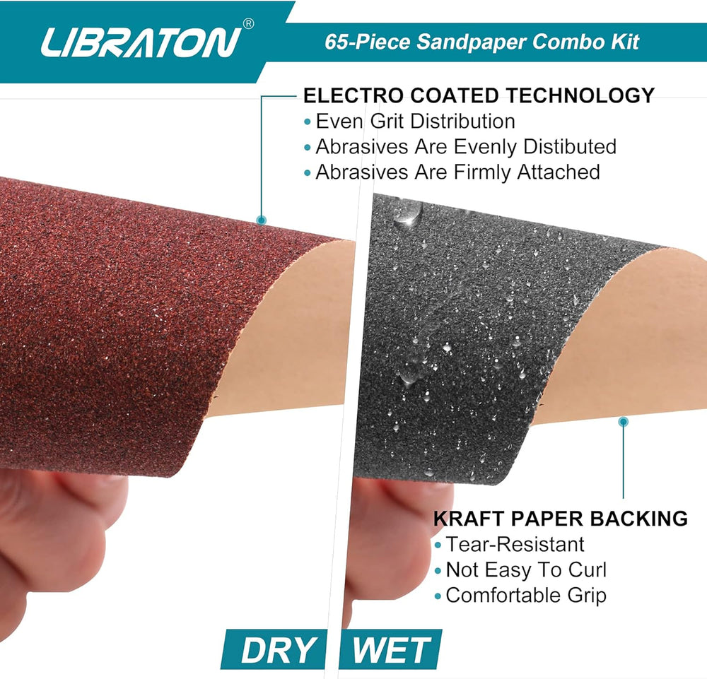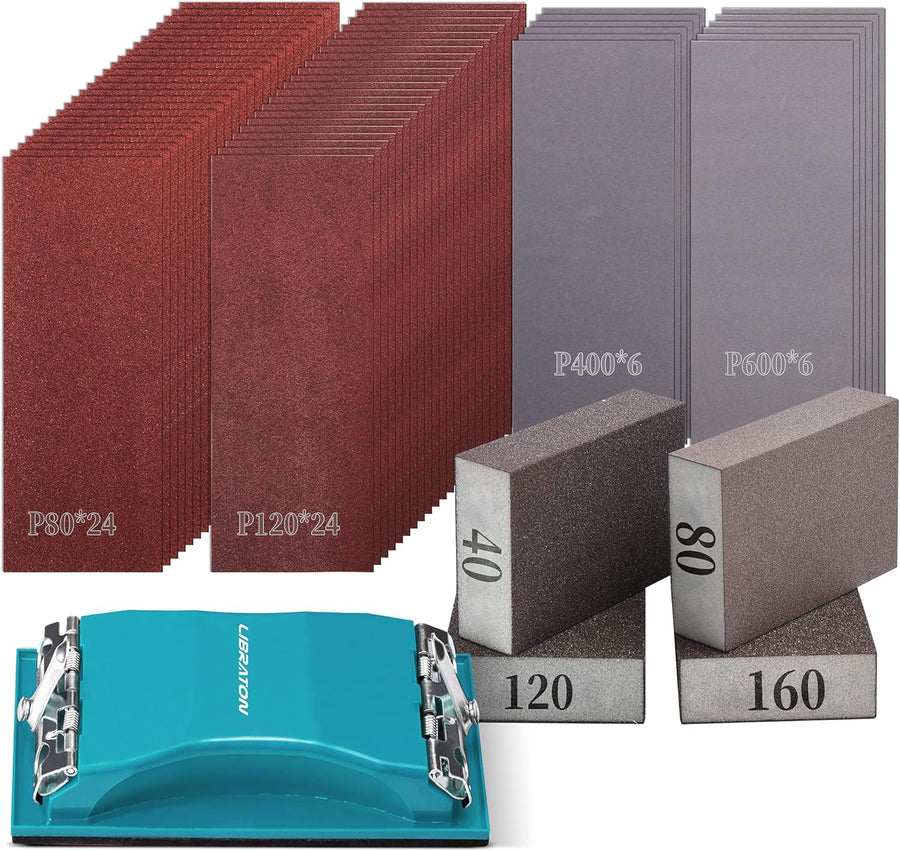 Schleifpapier, Schleifpapier holz, Schleifpapier Set K80 bis K600, Handschleifer, Sandpapier Set 65