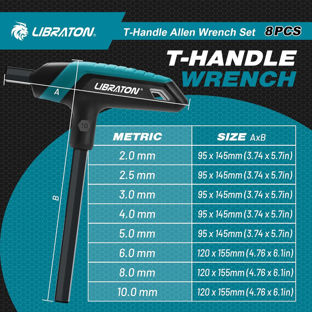 LIBRATON T-Griff Schlüssel-Satz, Metrisch T Griff Schraubendreher Set, 2,0 mm-10 mm T-GrifInnensechs