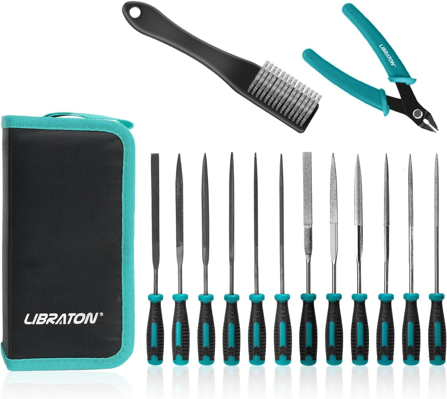 LIBRATON Nadelfeilen, Feilenset, Schlüsselfeilen, Diamant Feilen 13tlg, Holz und Metall, Mini Feilen