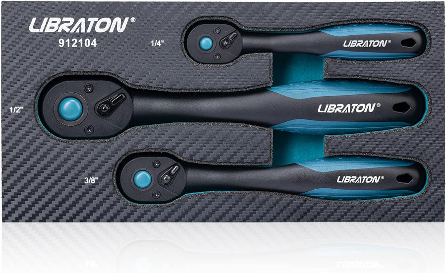 LIBRATON Umschaltknarre Antrieb, 72 Zähne Ratschengriff mit Schnellspanner, 3 TLG 1/4" 3/8" 1/2" Rat