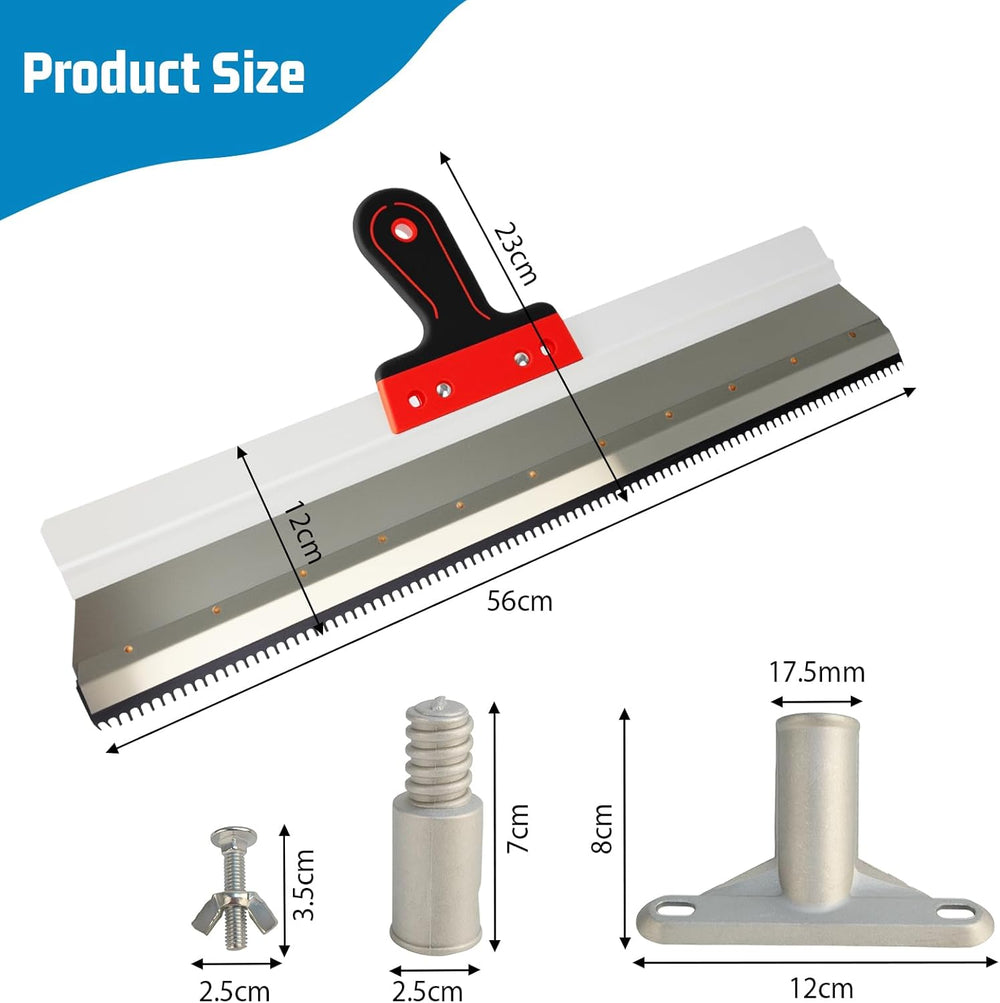 Flächenspachtel mit Stielhalter, Zahnspachtel tehrakel Gezahnt 56cm, Grossflächenrakel Trockenbau Sp