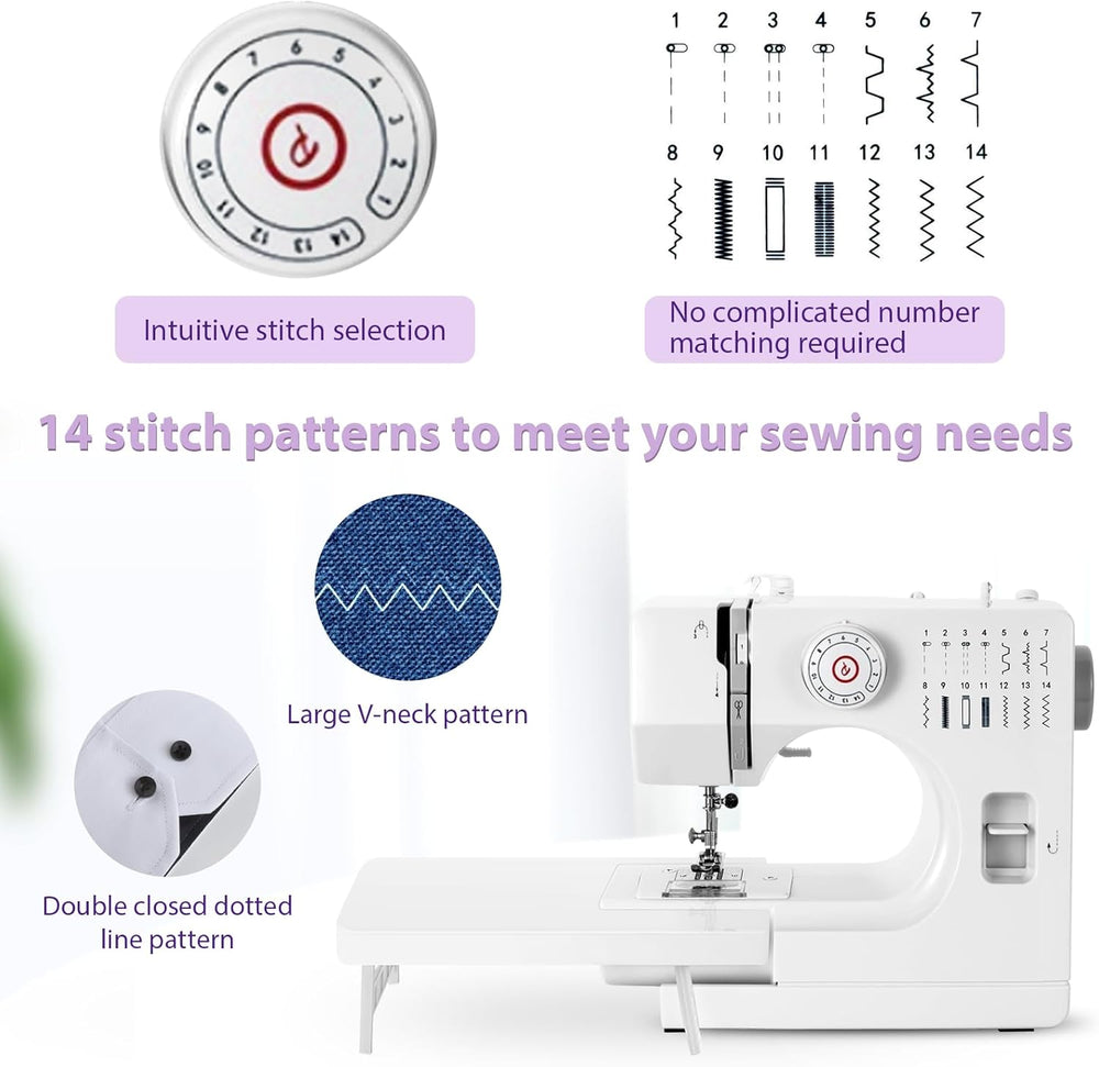 Mechanische Nähmaschine für Näh-Einsteiger & Anfänger, 14 Stichprogrammen, Nähmaschine mit Verlänger