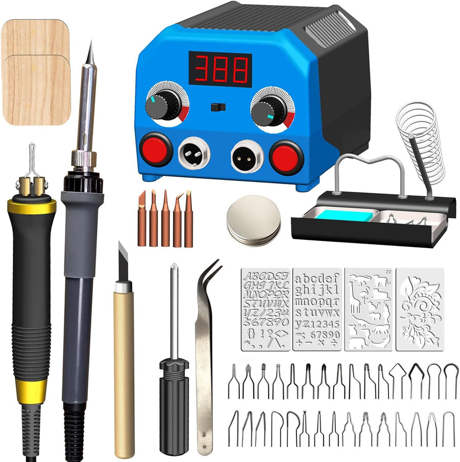 Doppelstift Brandmalerei Brennpeter für holz mit Digitalanzeig mit 2 Stiften und 30 Tlg Drahtspitzen