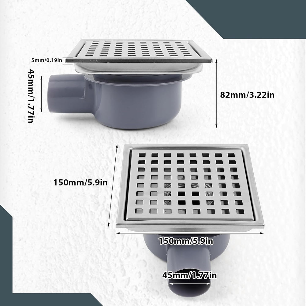 Edelstahl Duschablauf 15 * 15cm, Edelstahl Ablaufrinne Bodenablauf mit Geruchsverschluss und Ablaufr