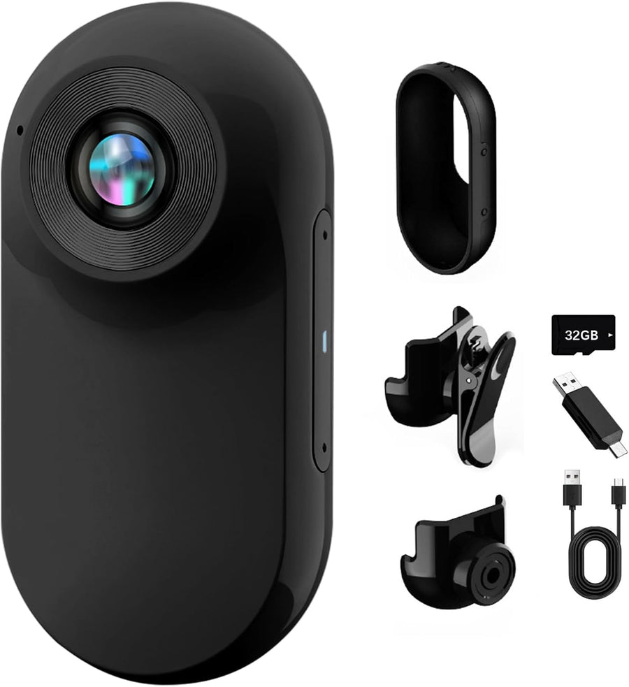 360° Action Kamera, Mini Action Cam1080P und 32 GB Speicherkarte Helmkamera, Magnetische Taschen-Dau