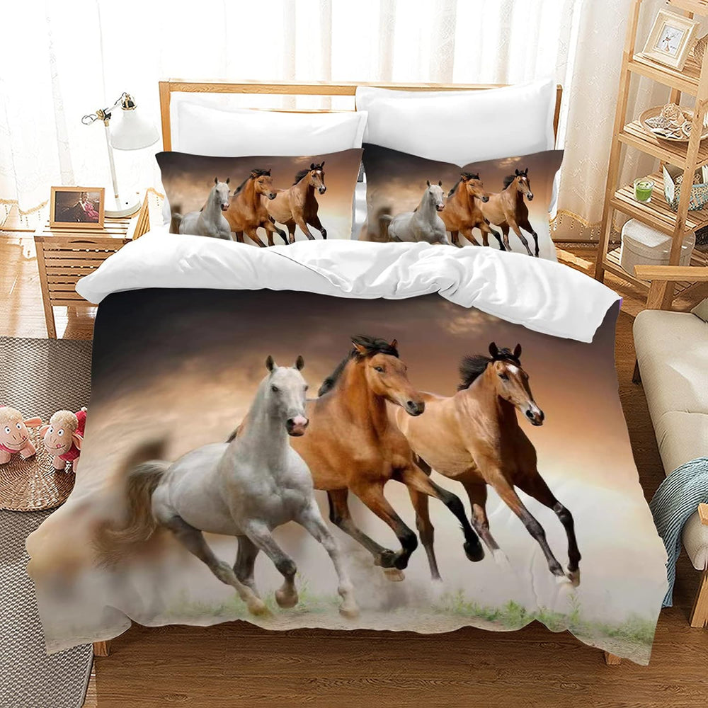 LLTTEER Bettwäsche Set für Pferde 3D-Druck,Kinder Tier Bettwäsche Set 3 Teiligs,Mikrofaser Bettbezug