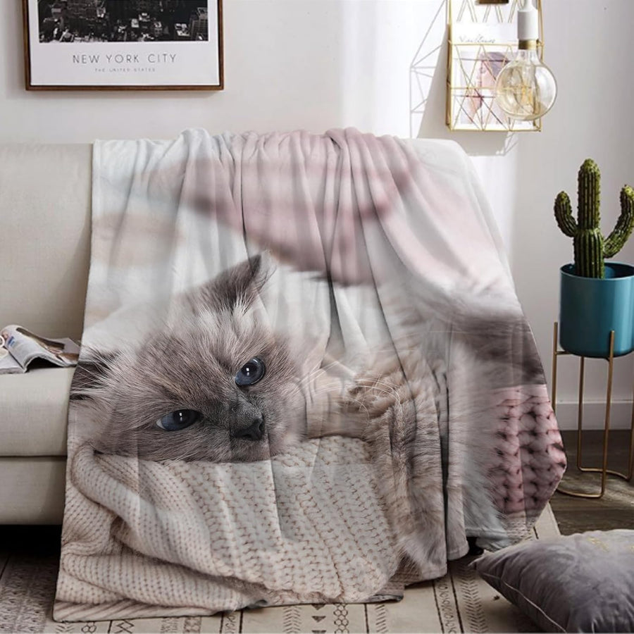 LLTTEER Katzemotiv Kuscheldecke für Kinder, Katzen Flanell Decke,Kinderdecke Katzemotiv Flauschige P