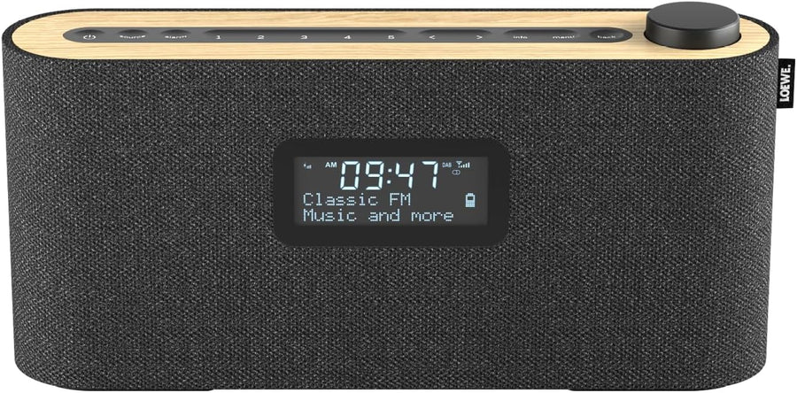 Loewe Radio.Frequency, DAB+ Radio, 28 Watt Sound, LCD Display, 14 Stunden Spielzeit, Holz, Stoff, Ra