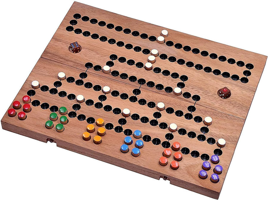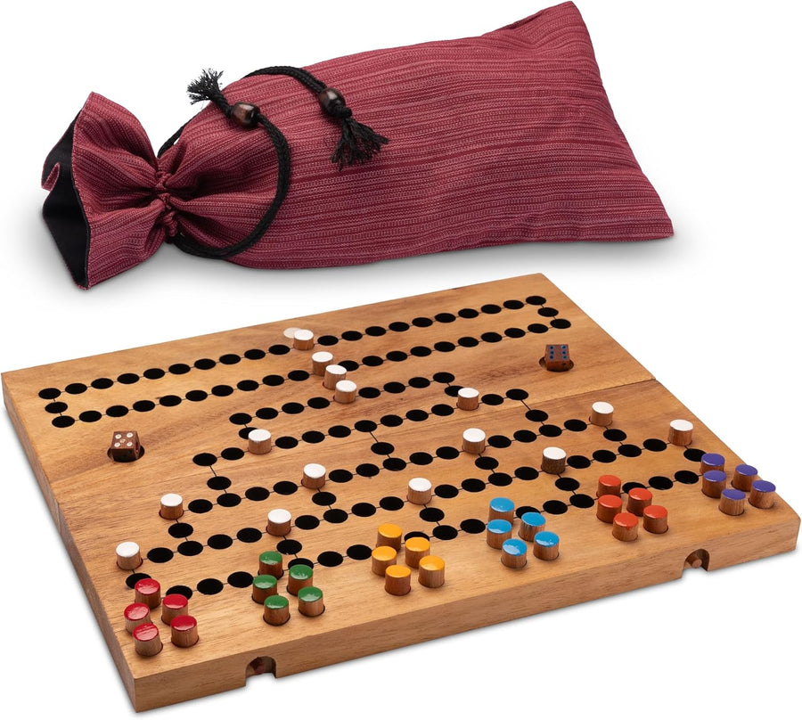 LOGOPLAY Ludo für 6 Spieler - Würfelspiel - Gesellschaftsspiel - Familienspiel aus Holz mit klappbar
