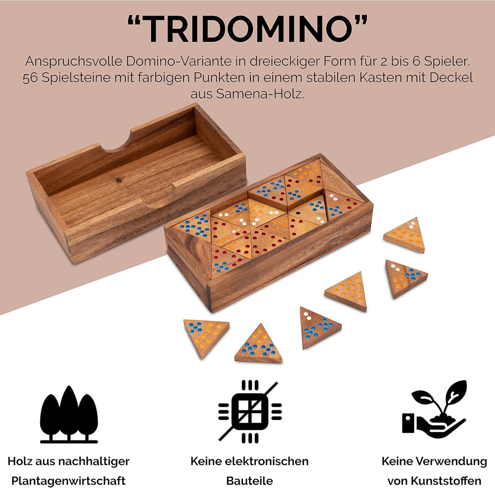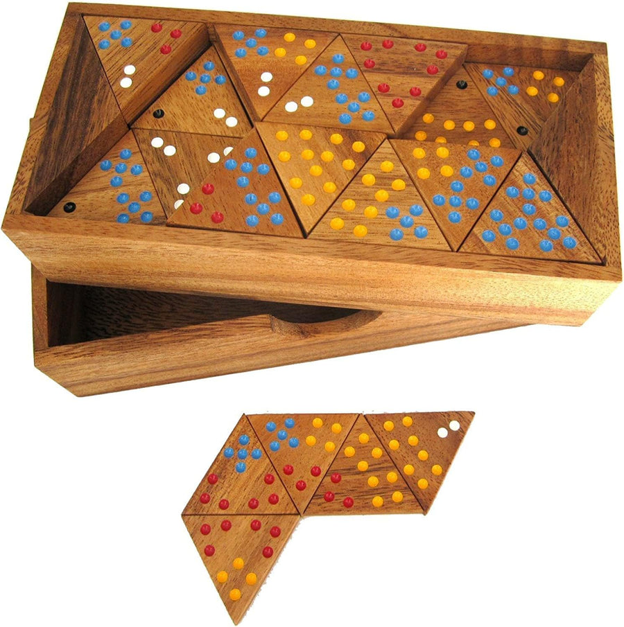 LOGOPLAY Tridomino - Triomino - Dreieck-Domino - Legespiel - Gesellschaftsspiel aus Holz mit farbige