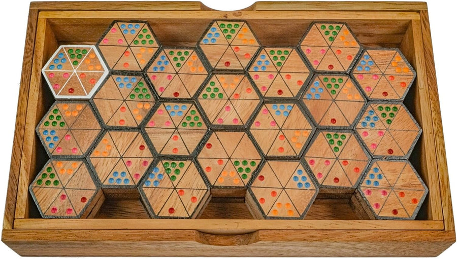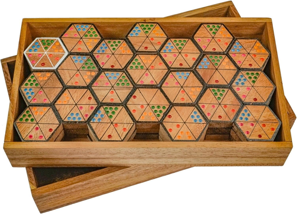 LOGOPLAY Hexadomino - Hexamino - Sechseck-Domino - Legespiel - Gesellschaftsspiel aus Holz mit 63 Sp
