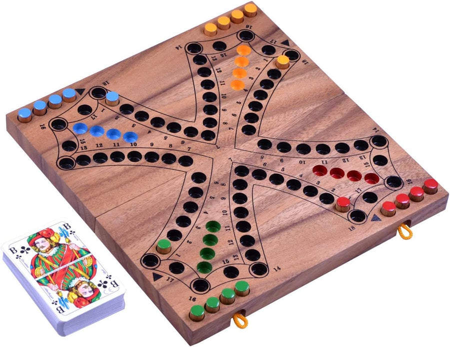 LOGOPLAY Tock für 4 oder 6 Spieler - Gesellschaftsspiel mit Spielkarten - Brettspiel aus Holz mit zu
