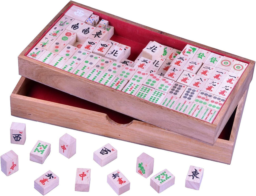 LOGOPLAY Mayong - Mahjong - Mah Jongg - Mahjongg - Legespiel - Gesellschaftsspiel aus Holz mit 144 S