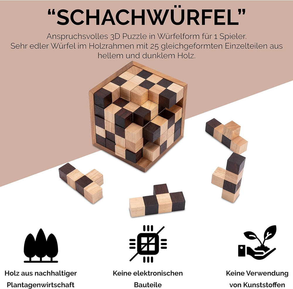 Schach-Würfel 125er Cube XL - 3D Puzzle - Denkspiel - Knobelspiel - Geduldspiel - Logikspiel im Holz