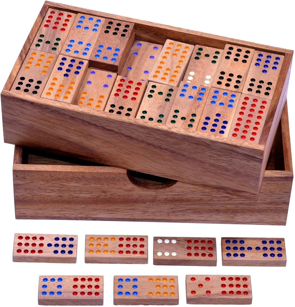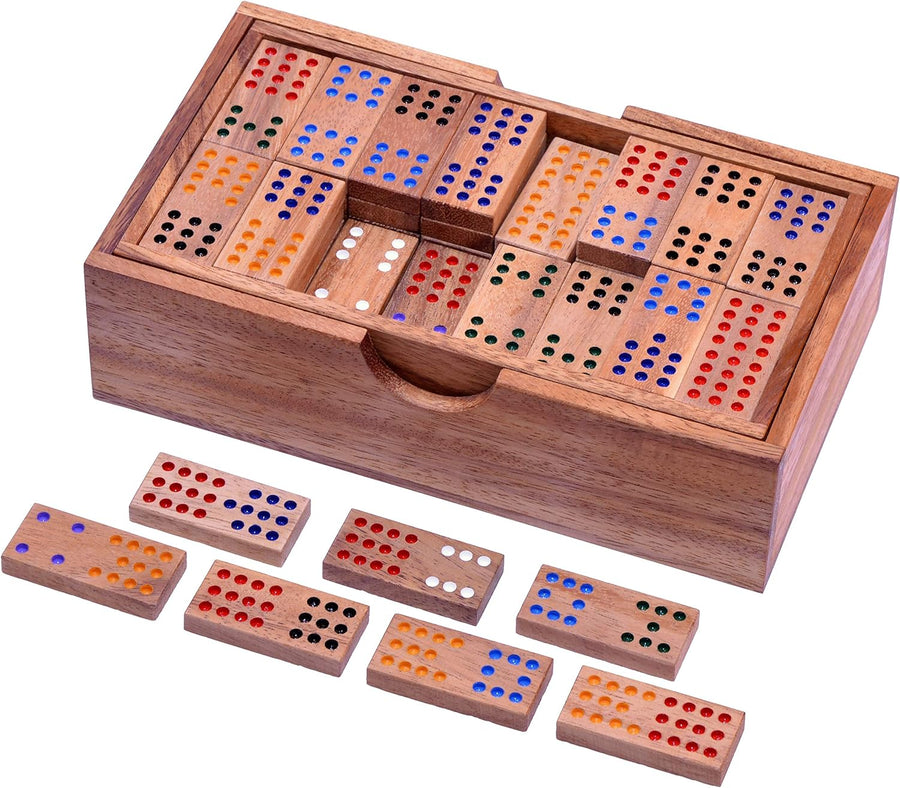 LOGOPLAY Domino Doppel 12 - Legespiel - Gesellschaftsspiel aus Holz mit 91 Spielsteinen