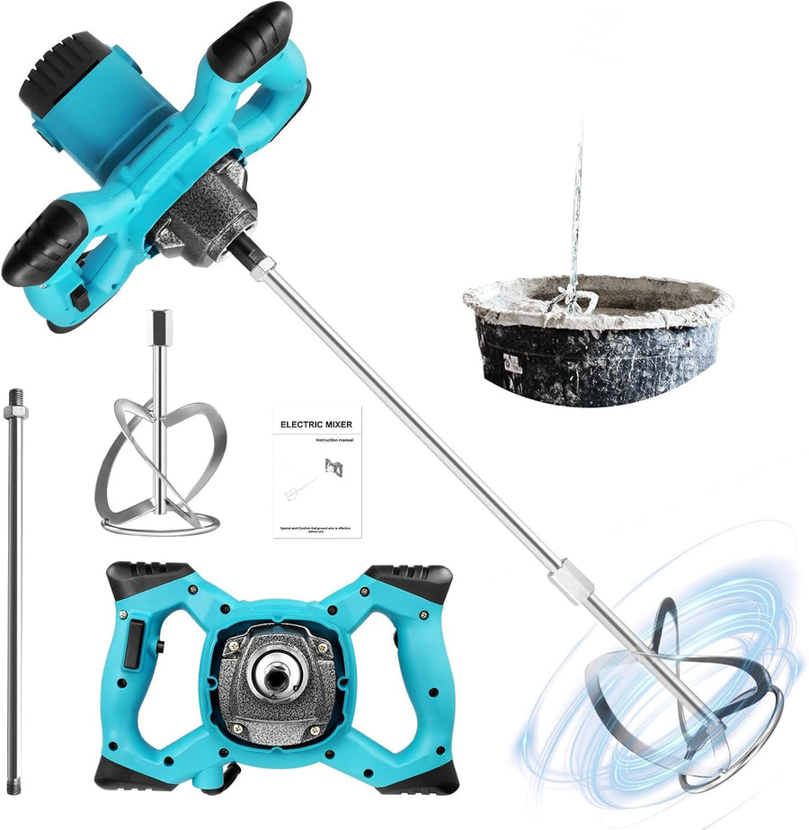 Mörtelrührer, 2100W Betonmischer, Rührwerk Beton with 6 Speed, Rührgerät Mörtel Betonrührer, Rührwer