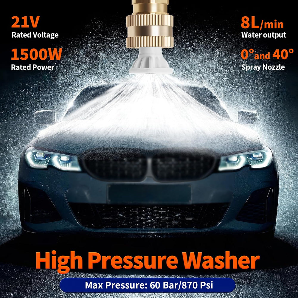 Akku Hochdruckreiniger, 21V 60Bar Mobile Akku-hochdruckreinige𝗿, Hochdruckreiniger mit 2 akkus, 3-in