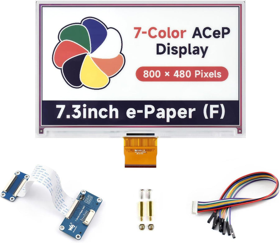 LUCKFOX 7.3-inch e-Paper HAT (F), 7-Color e-Ink Screen with PCB, 800x480 Pixels, Low Power Consumpti