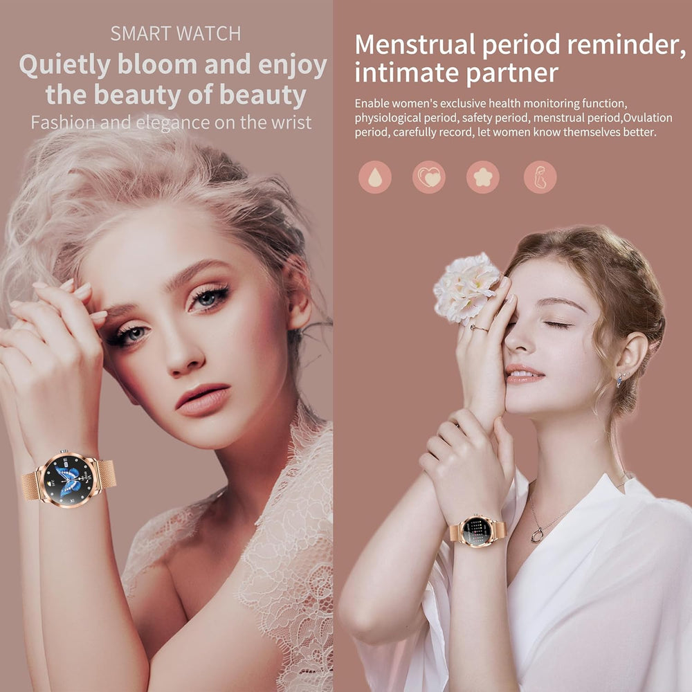 Smartwatch Damen mit Telefonfunktion, 1,32 Fitnessuhr Diamond Damen, Fitness Tracker Uhr mit Menstru