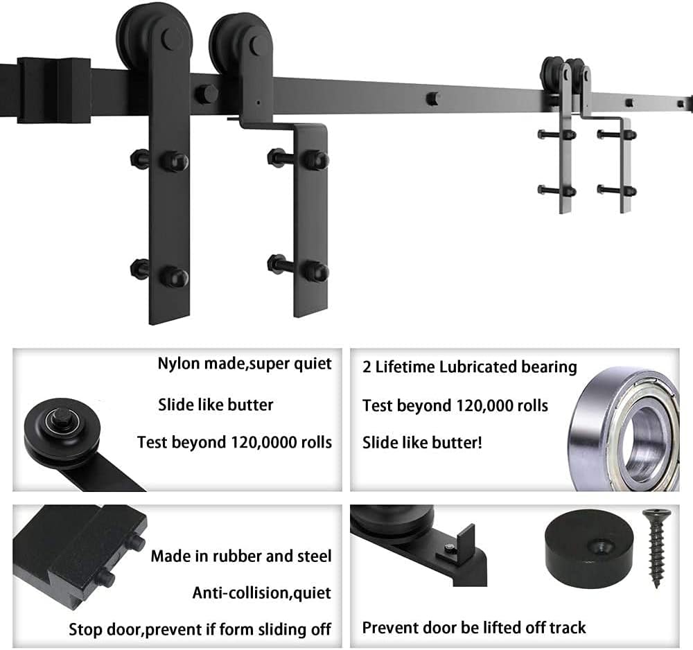 Schiebetürbeschlag Set 6.6FT/200 cm Schiebetür Kit Hängeschiene Schiebetürsystem Barn Door Hardware