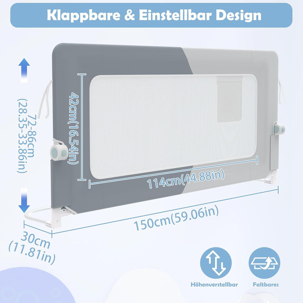 LZQ Kinderbettgitter Bettschutzgitter,Rausfallschutz Bett für Kinder 150cm,Höhenverstellbar Bettgitt