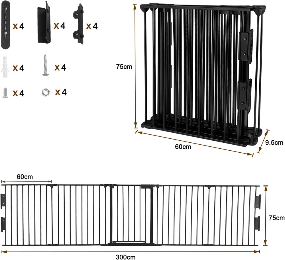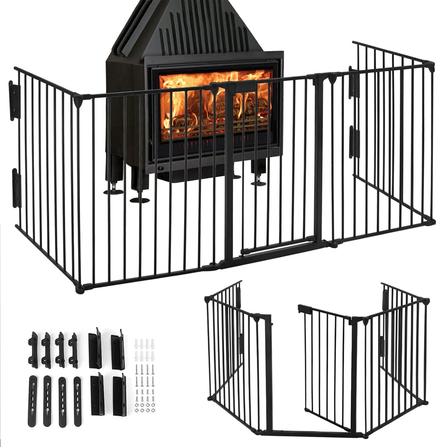 LZQ Kaminschutzgitter mit Sicherheitstür Metall Ofenschutzgitter Gesamtlänge 300 cm, Kamingitter Kin