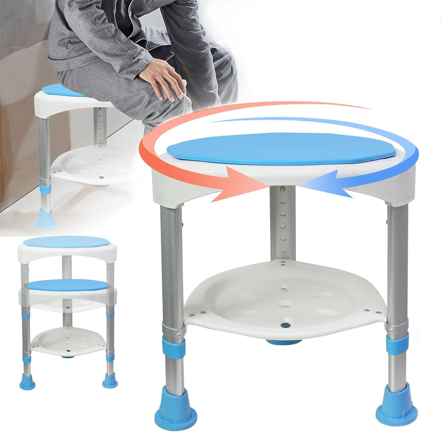 LZQ Duschhocker Duschstuhl Badhocker 360° Drehbar Badsitz und 45-57cm Höhenverstellbar Anti-Rutsch D