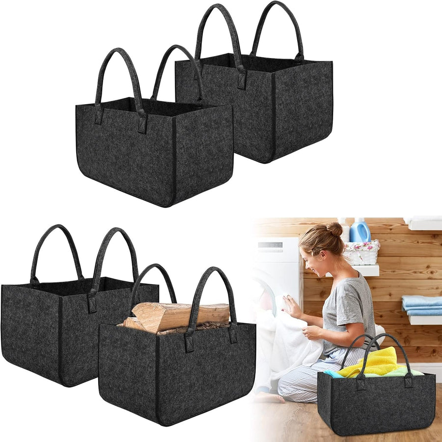 LZQ 4 Stück Gross Filztaschen Filztaschen Kaminholzkorb Filztasche Shopper Faltbar Filz kann als kam