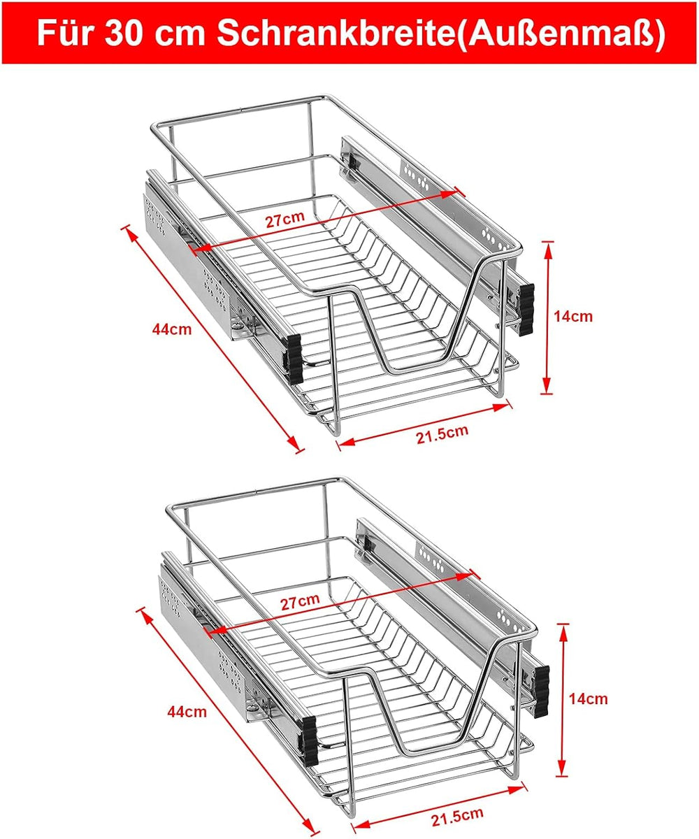 LZQ Teleskopschublade Küchenschublade 2x 30cm Küchenschrank Korbauszug Schrankauszug Schlafzimmersch