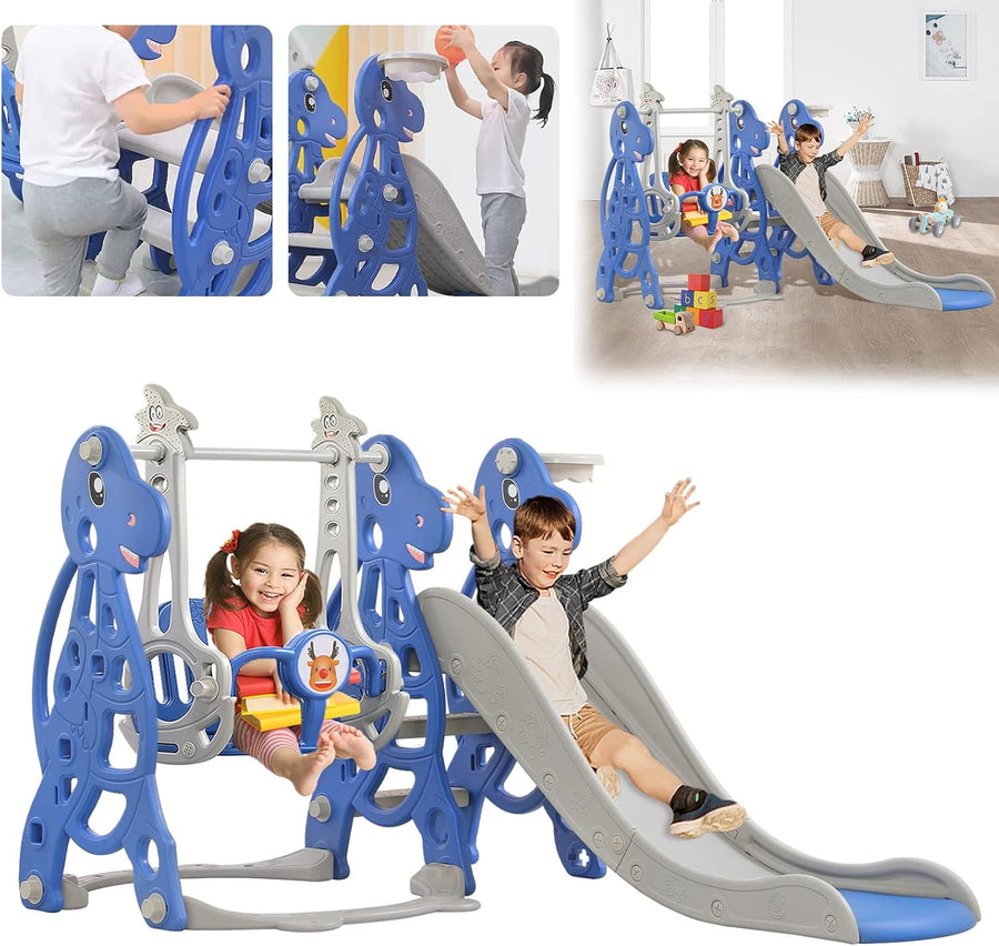 LZQ Kinder Freistehende Rutsche ab 1 Jahr, 4 in 1 Spielzeugrutsche Kinderrutscher mit Basketballkorb