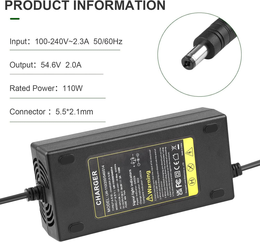 Labtec 54,6V 48V 2A Ladegerät Ladekabel für 48V 2A 13S Li-on Akkus E-Bike Elektrofahrrad Pedelec Hov