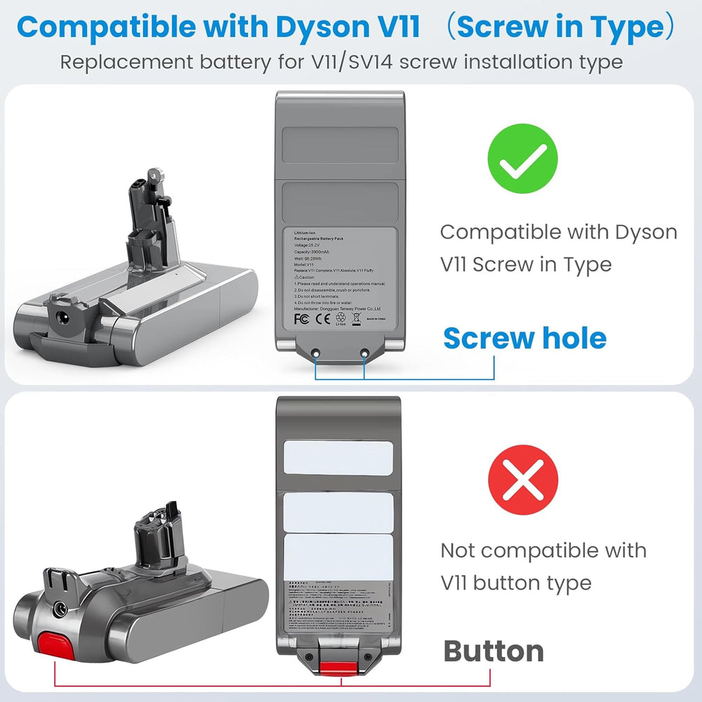 LabTEC V11 Li-ion Ersatzakku für Dyson V11 (Screw in Type), 25.2V 3900mAh Akku für Dyson SV14 Absolu